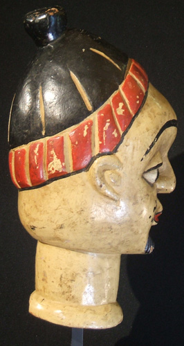 Temne tribe, Jolay Society headpiece used in fishing boat to assure a good catch. This is an early work by artist John Goba. Sierra Leone Wood, paint 12" high (20" including base) #y2330-10 Was $2450 Reduced Price: $1470